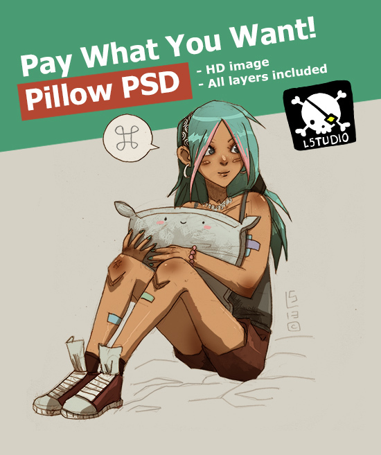 Here is the Zip with my PSD file of Happy Pillow illustration. Feel free to recolor this image. Or print it or use it like a desktop wallpaper for your smartphone. Or whatever you want. YAY! Just don't sell it.